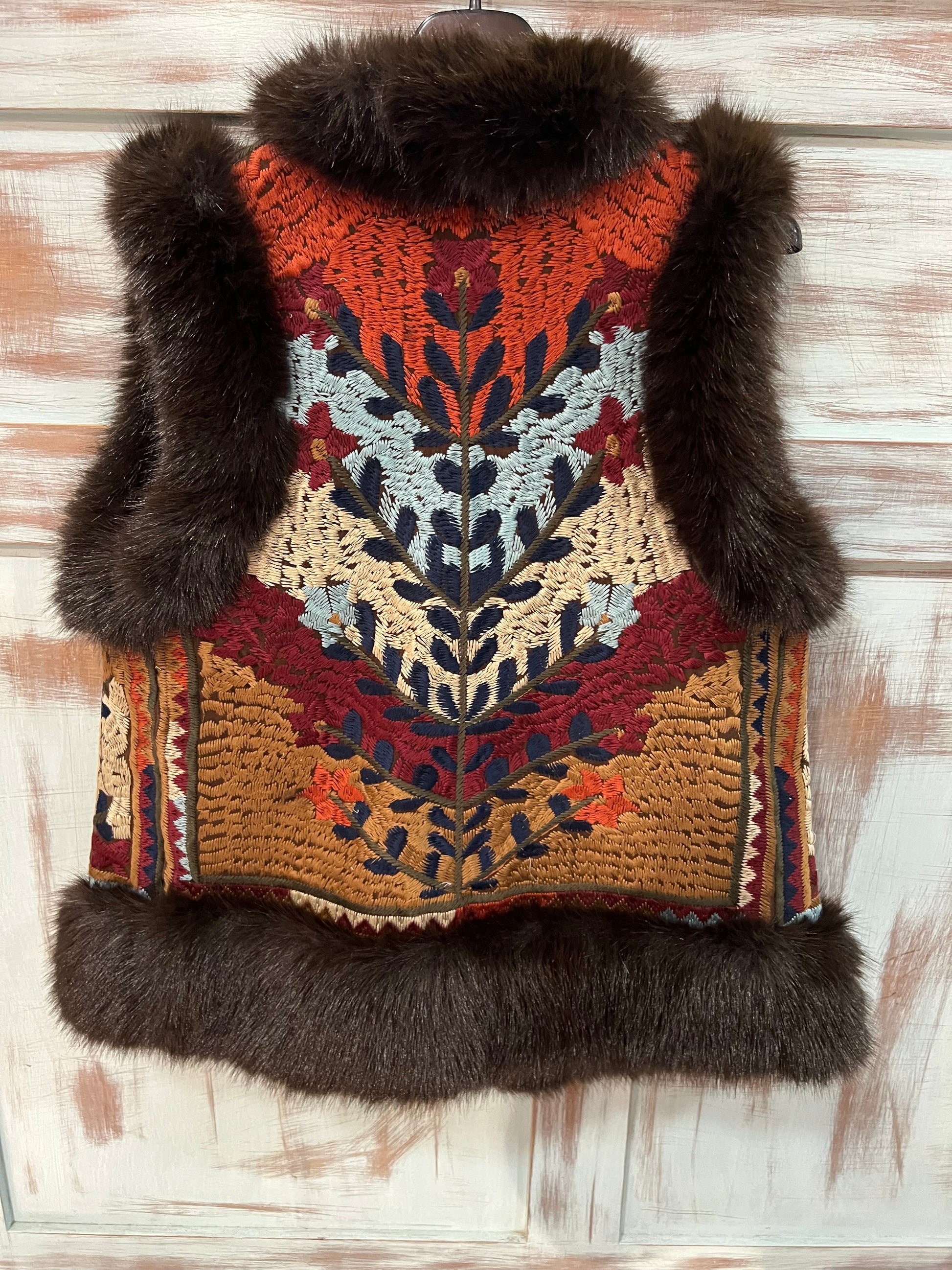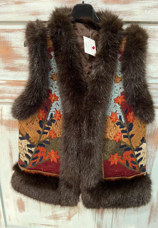 Chaqueta sin mangas bordada en distintos colores.